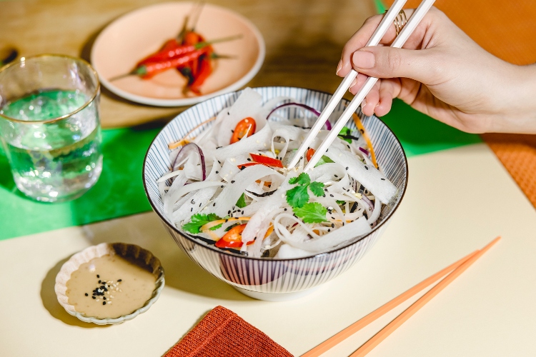 Würzig-mild, knackig-lecker und voller Vitamine: hört sich das nicht gut an? Unser Daikon-Salat mit cremigem Sesam-Dressing eignet sich super als schnelle Beilage zum frischen Sushi oder als kleiner Mittags-Snack für zwischendurch.