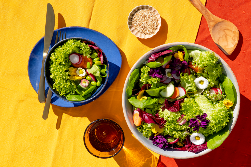 Blüten sind die hübscheren Kräuter – das gilt vor allem in bunten Salaten! Die passenden Blüten verwandeln deinen Teller nicht nur in eine blühende Sommerwiese, sie sorgen auch für einen ganz besonderen Geschmack. Besonders lecker im Salat sind Blüten wie Kapuzinerkresse, Löwenzahn, Ringelblume und Borretsch. In vielen asiatischen Ländern wird außerdem gerne mit essbaren Chrysanthemenblüten gekocht. Geschmacklich erinnert die Speisechrysantheme etwas an Kresse und Wacholderbeeren mit einem eher scharfen Aroma.