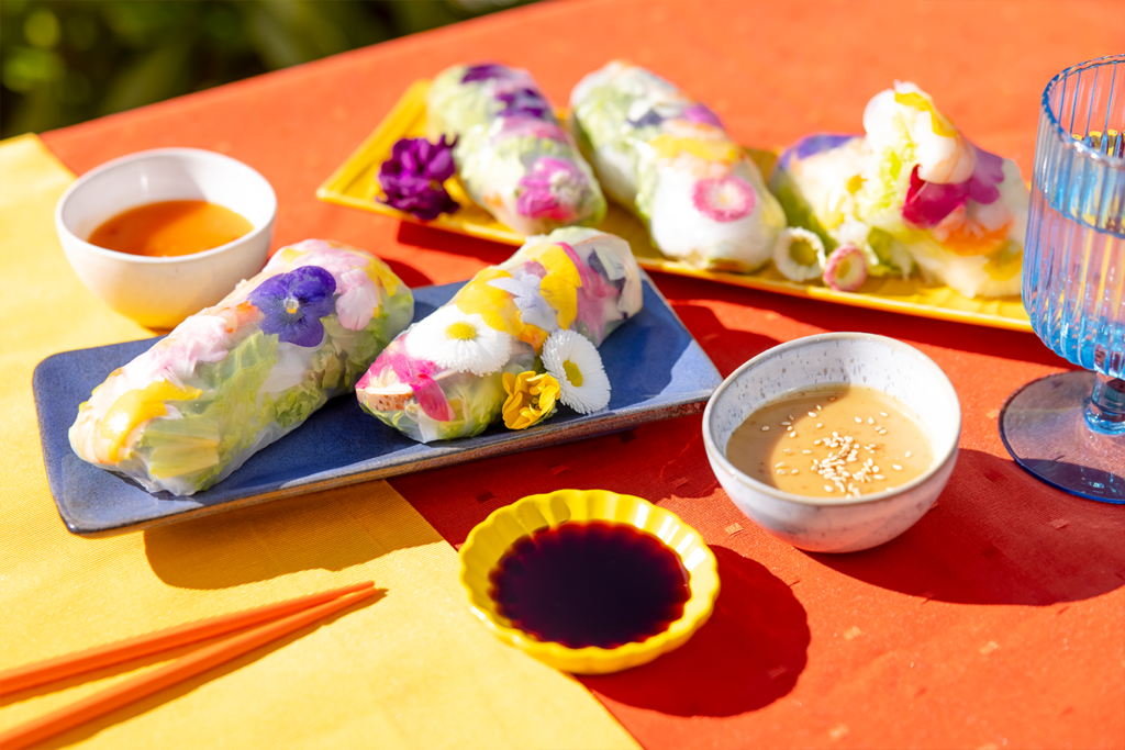 Es gibt doch nichts sommerlicheres als frische Sommerrollen – und mit essbaren Blüten werden die frischen Rollen gleich noch schöner. Greife für deine Sommerrollen zu essbaren Blüten mit richtig kräftigen Farben wie Stiefmütterchen, Ringelblumenblüten oder Kapuzinerkresse.