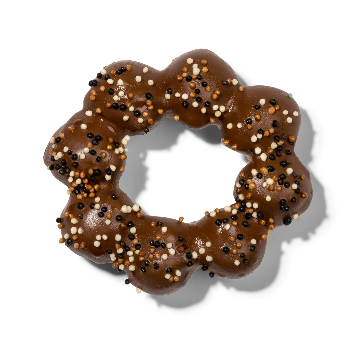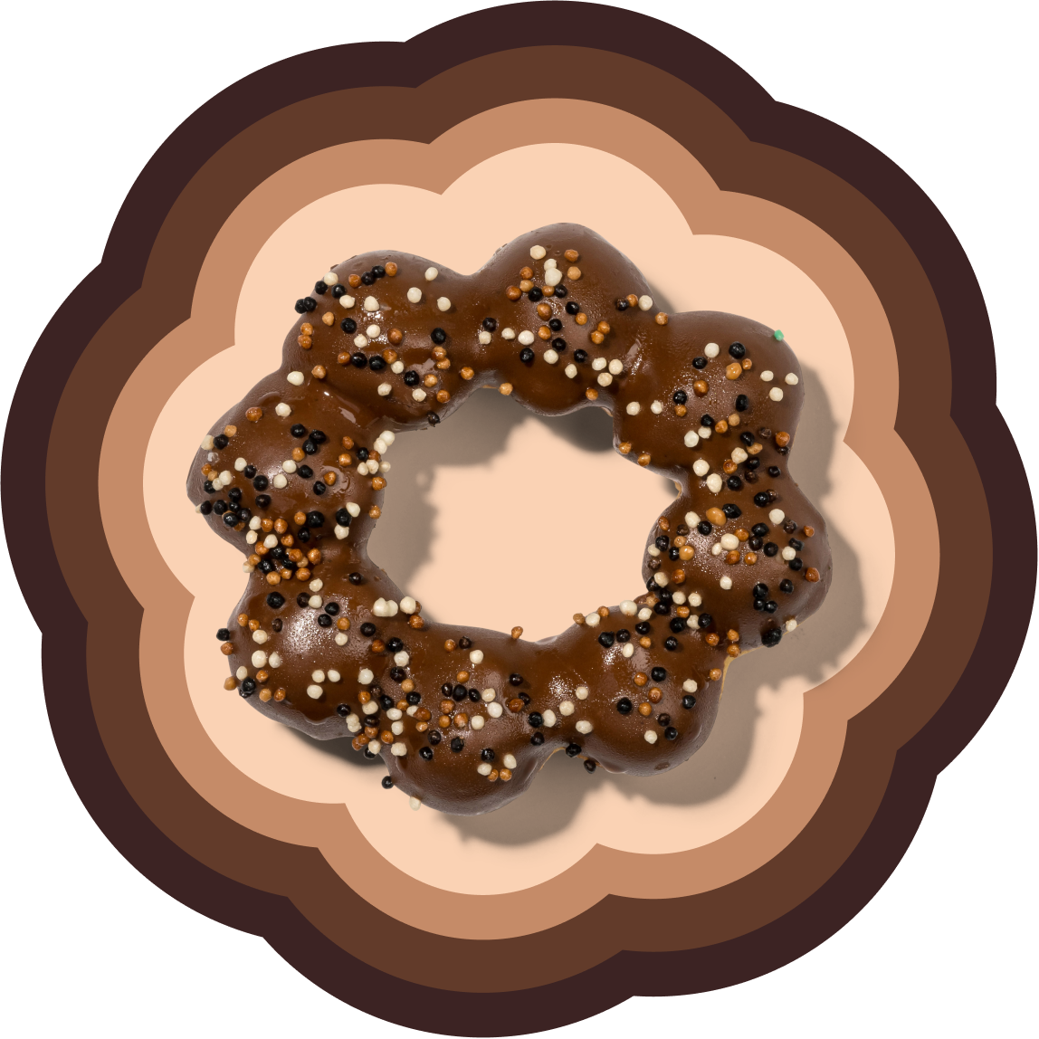 Mochi Donut ChocolateFluffiger Teig, Glasur mit Schoko und leckerem Topping. Mochi Donut StrawberryFluffiger Teig, Glasur mit Erdbeer-Geschmack und leckerem Topping.