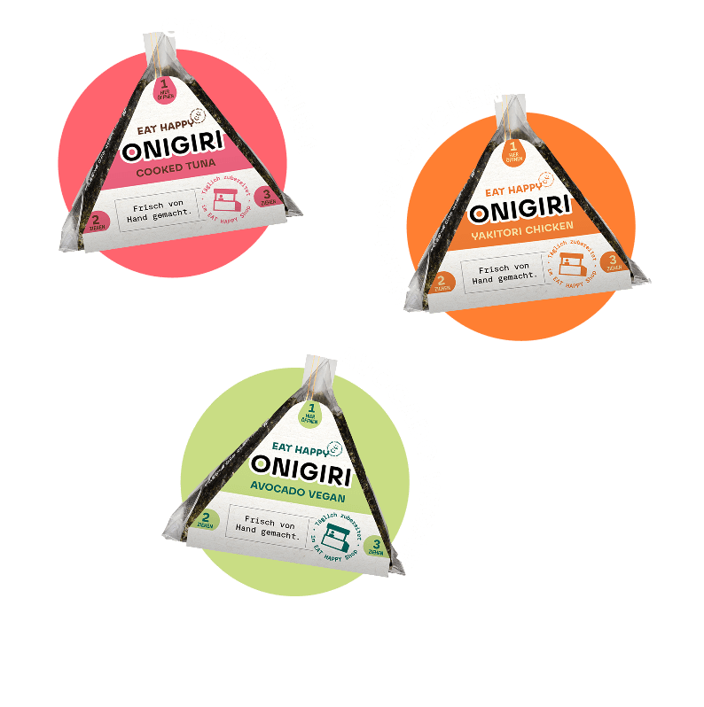 Frisch & handgemachtOnigiri zum Snacken LECKERE Reisecken MIT herzhaften Füllungen UND geröstetem Algenblatt. Täglich frisch ZUBEREITET.