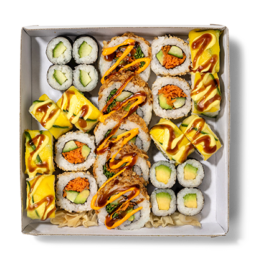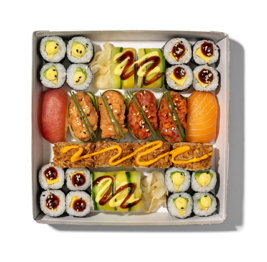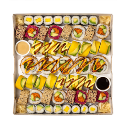 Für einen gemütlichen Abend zu Hause mit deinen Liebsten kannst du jetzt ganz einfach Sushi-Platten über unseren Onlineshop vorbestellen und am nächsten Tag in einem EAT HAPPY Shop in deiner Nähe abholen. Du hast eine größere Feier oder ein Firmenevent geplant? Dann schick uns doch direkt eine Catering-Anfrage über unser Bestell-Formular.