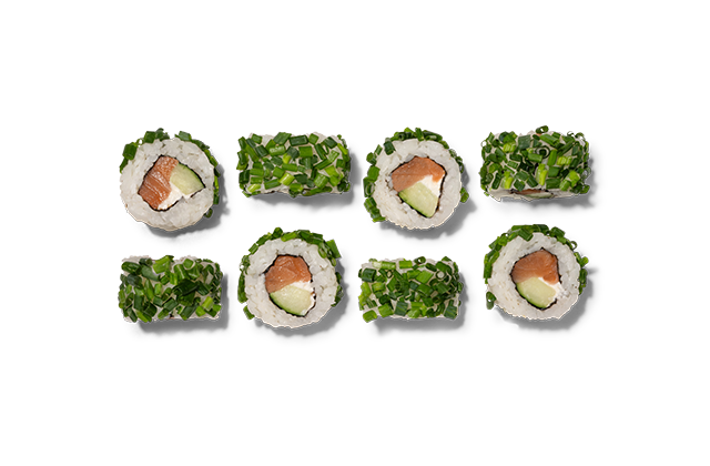 - 8x California Lachs Gurke Schnittlauch (gefüllt mit Lachs, Gurke, Frischkäse und getoppt mit Schnittlauch)