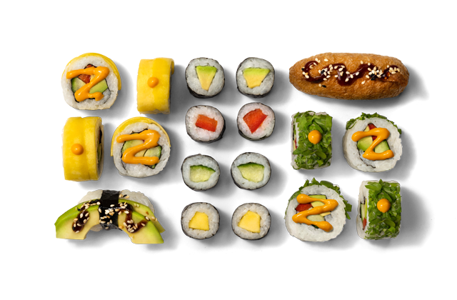 - 4x Rainbow Vegan Mango (gefüllt mit Avocado, Gurke, Paprika und als Topping Mango, Sriracha-Sauce)