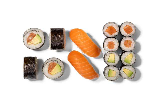 Unsere Sushi-Box Lachs Avocado Trio beinhaltet: