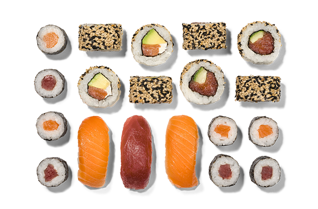 Unsere Sushi-Box Lachs Tuna Mix (19 Stück) beinhaltet: