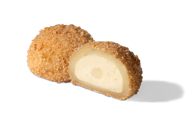 Reisdessert mit cremiger Apfel-Zimt-Füllung, ummantelt mit Mürbegebäck, aufgetaut (16 % Apfel bezogen auf das Gesamtgewicht).