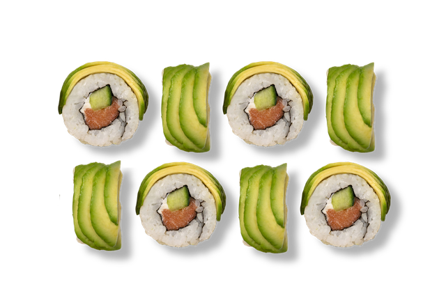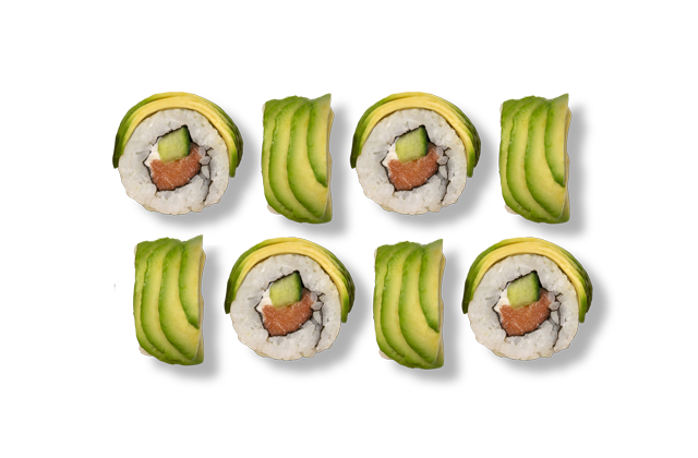- 8x Rainbow Avocado (gefüllt mit Lachs, Gurke, Frischkäse und Avocado als Topping)