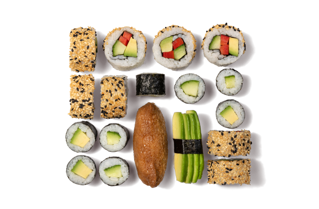 - 8x California Vegan (gefüllt mit Gurke, Avocado und Paprika)