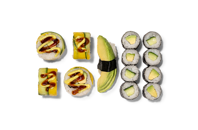 Unsere Vegan Selection Mix beinhaltet 13 Sushi-Rollen: