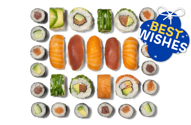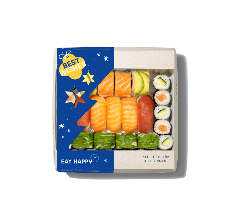 Unsere beliebte Weihnachtsbox ist zurück! Auch dieses Jahr ist sie wieder prall gefüllt mit unseren Sushi-Klassikern: Von Maki über Nigiri bis hin zu California Rolls – für jeden Geschmack etwas dabei.
